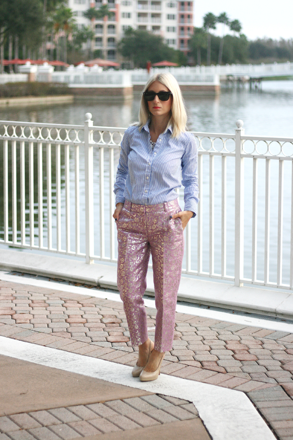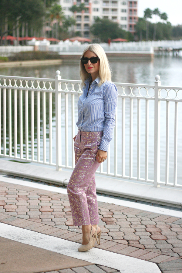 Blouse: J.Crew (sold out, similar) Factory l Pants: J.Crew (old, similar) l Shoes: Aldo (old, similar) l Sunglasses: Ray Ban l Watch: Michael Kors l Necklace: T&J Designs (similar) l Earrings: J.Crew Factory (old, similar)